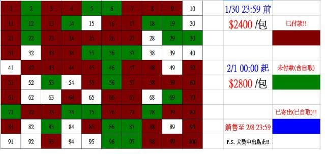 並於 2/1(五) 下午店面營業時 同步開賣剩餘之包數($2800/包),並開放預定自取..