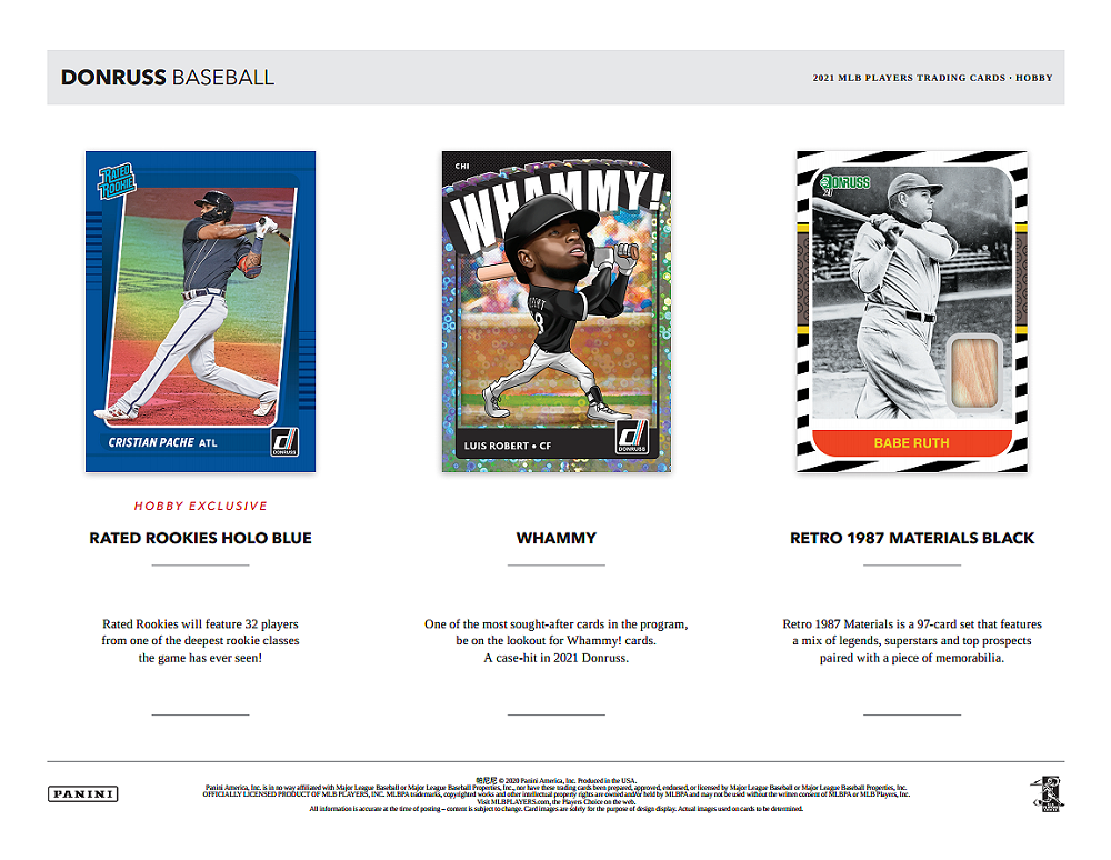 Rated Rookies are a core part of the base set. More than 30 Rookie Cards are part of the checklist, drawing from the large number of top prospects who made their MLB debuts during the shortened 2020 season.