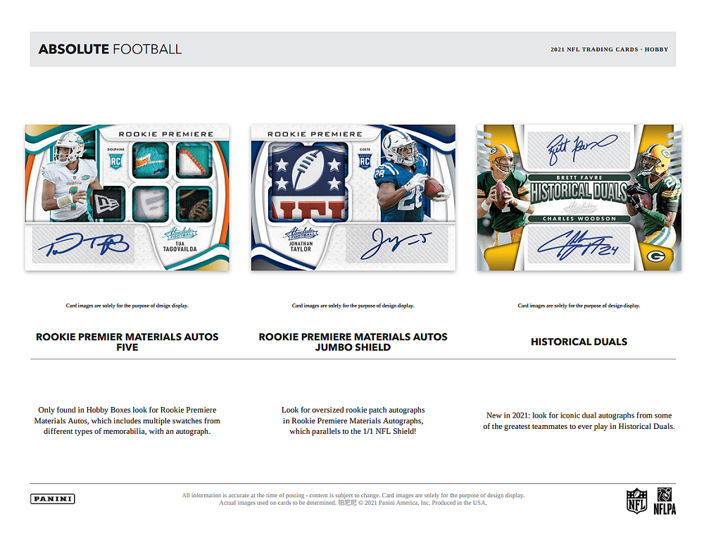 Each 2021 Absolute Football hobby box has one insert that isn’t signed or featuring memorabilia.