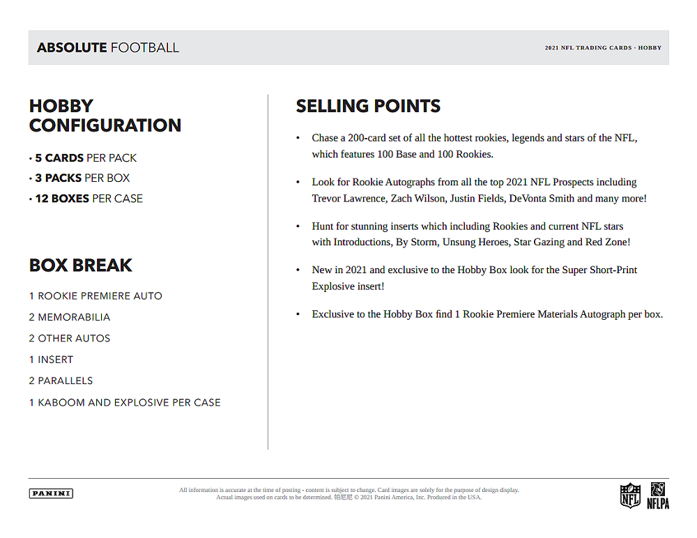 2021 Panini Absolute Football Checklist Overview